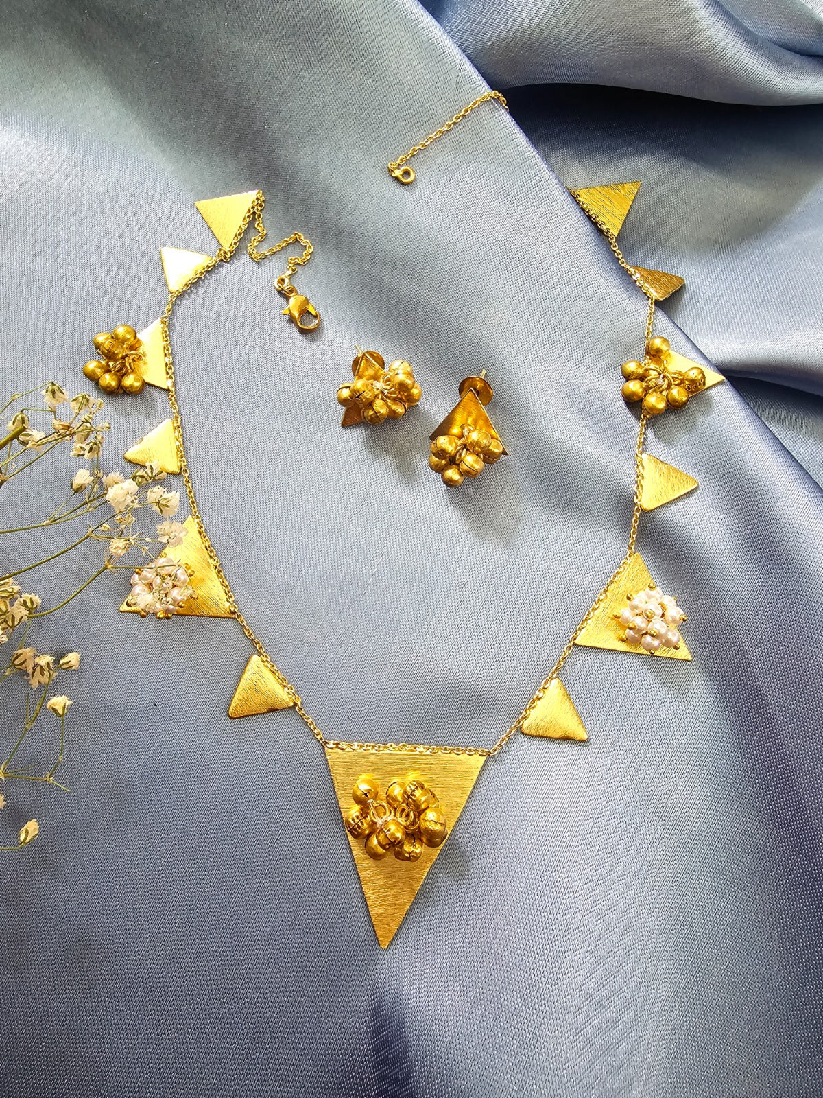 Golden Ghungroo Triangle Short Neckpiece With Earring