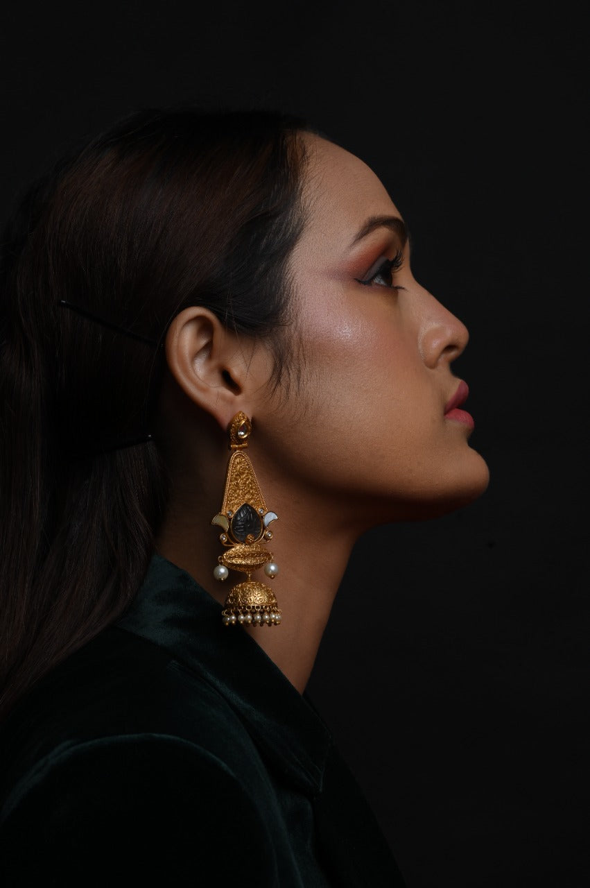Haritiki Design Gold Polished Stone Studded Jhumka