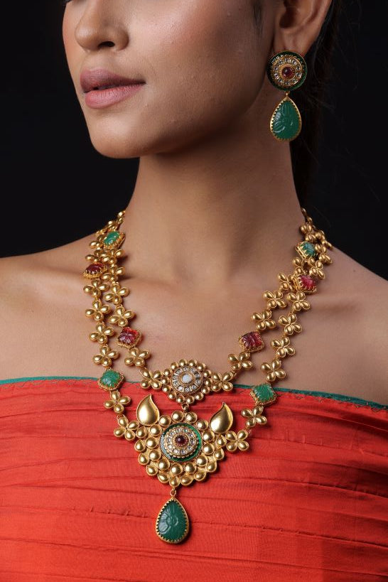 We present our handcrafted and finely curated"Tribal Maharani" which signifies the emotion of cheerfulness at the sight of remarkable jewels. This collection is embellished to being unusual , striking and extraordinary to elevate your look.